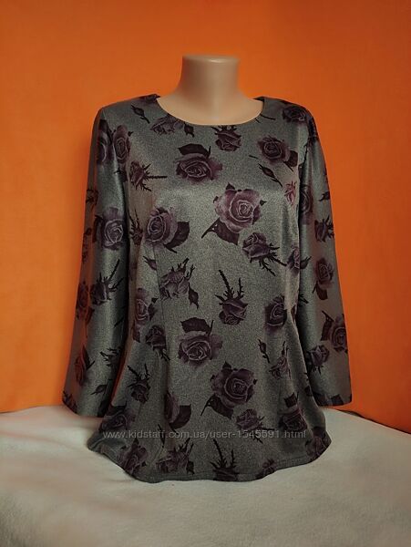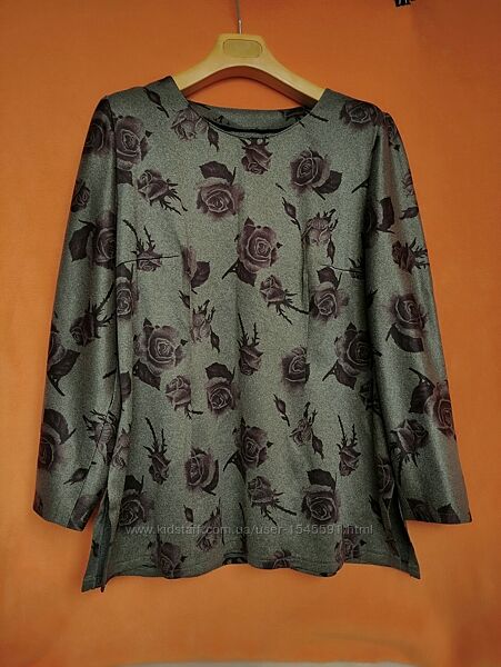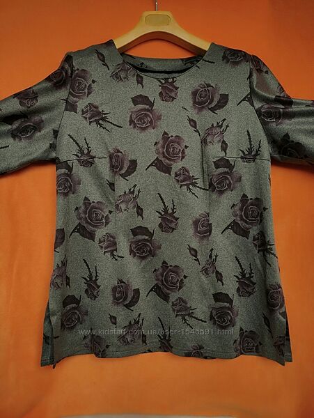 --Лонгслив у принт троянди в чудовому стані. Без будь-яких дефектів.--Колір: сірий меланж з фіолетовими квітами.