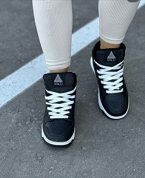 Зимові кросівки жіночі чорні, хайтопи
