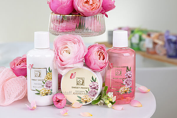 У набор входять : гель для душу 180 мл, лос"йон для тіла 180 мл, масло для тіла 60 мл, губка 10 г.