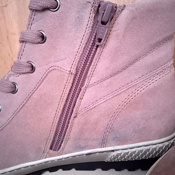 Бренд: Gabor (Німеччина).Особливості моделі: європейський виробник, натуральна замша, достатньо легкі по вазі, теплі, м´які всередині, мають довговічну заводську прошивку підошви, зручно і швидко взуваються завдяки блискавкам. Нові (сток, без функціональних дефектів, є незначні декоративні нюанси).