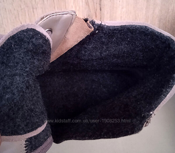 Матеріал: зовні натуральна замша, всередині щільне шерстяне утеплення. Устілки теж шерстяні, виймаються, м´які і теплі.