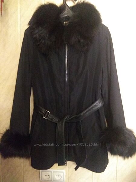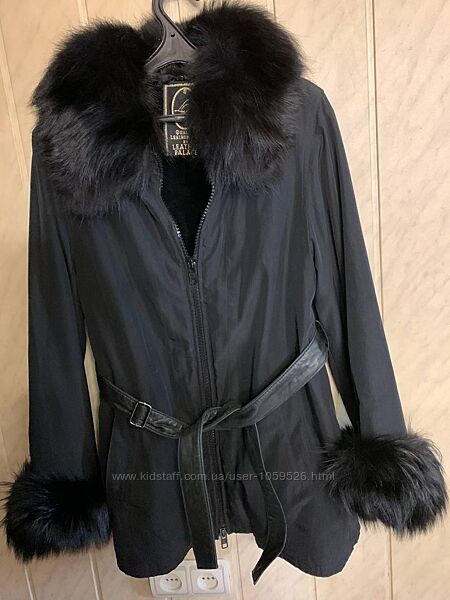 Очень качественная и очень теплая куртка , подкладка-натуральный мех (мутон)Воротник и отделка рукава- натуральный мех. Пояс-натуральная кожа. Без изъянов и дефектов. Верх -плотная непродуваемая