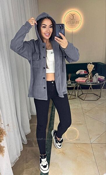 Стильна тепла сорочка на ґудзиках, з капюшоном та двома накладними кишенями.Модель: 1/ мрир021556109.