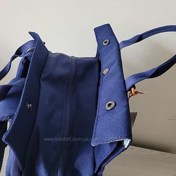 1 велике відділення з подвійною собачкою, з кишенею для ноутбука + ще кишеньки 1 велике відділення на кнопку 2 кишеньки по боках Брендована фурнітура Ручки, які кріпляться на кнопку Ортопедична спинка М´які лямки Колір синій