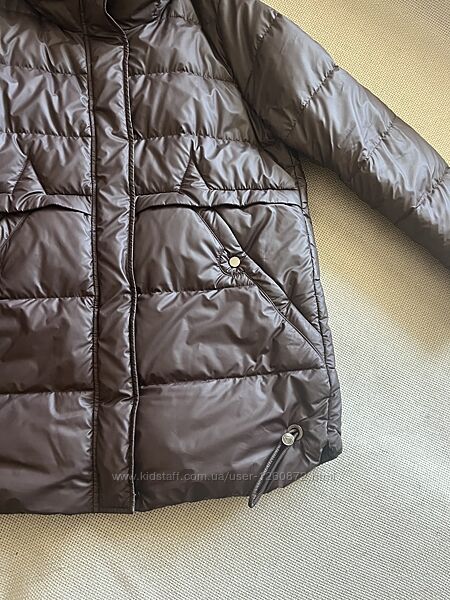 Класна зимова куртка шоколадного кольору ,наповнювач тінсулейт дуже тепла ,не важка ,з глибоким капюшоном довжина 80 см пог 60 см пот 62 см поб 65/66 см