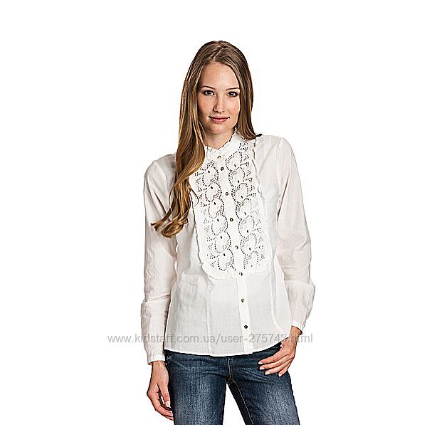 Блузка производство VERO MODA, хлопок, размер XL. Блузка производство VERO MODA, хлопок, размер XL. Белая блузка на застежке из перламутровых пуговиц, воротничек-стоечка и небольшой манжет так же на пуговичке, впереди блузка украшена прошвой и оборочкой.Состав 100% хлопок.Замеры размер XL -длина 64 см плечи 41 см, ширина под проймой 52 см, рукав 62 см.