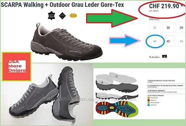 Подробное описание: Полуботинки мембранные, тактические Scarpa Mojito GTX разм. 44 28.5см