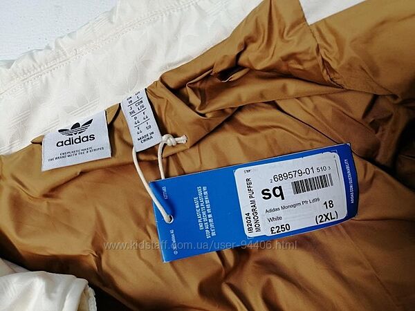 Новый женский пуховик куртка Adidas с монограммой пух и перо