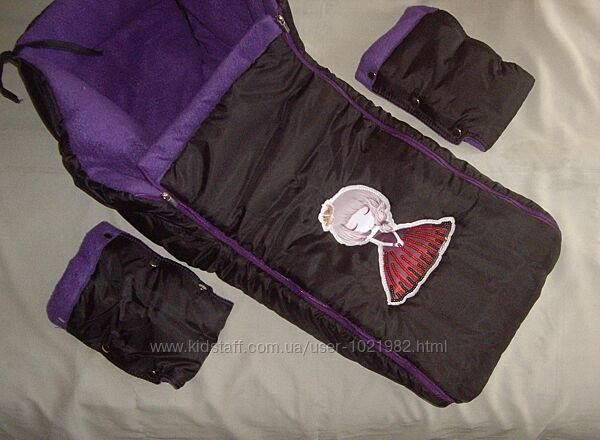 Конверт теплий для коляски санок люльки з флісом. Ширина спального мішка: 32 см. Рукавиці-25 на 20 см. Довжина мішка - 92 см. Довжина переньої частини- 62 см.Повернення не приймається. Самовивіз або відправка Новою Поштою або УкрПоштою за рахунок отримувача. Передплата 100 % на карту Приватбанку або готівкою.