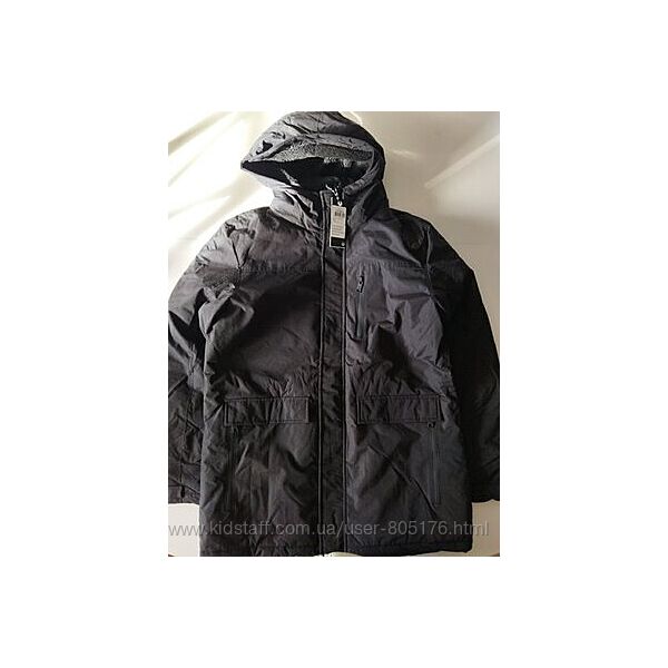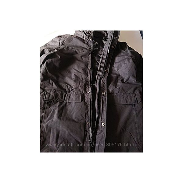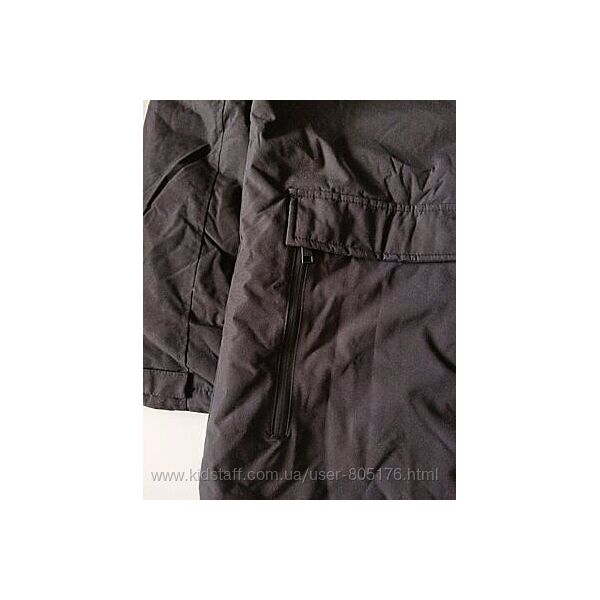 Має дві передні кишені на кнопках і дві на блискавці, одну нагрудну кишеню на блискавці та одну внутрішню кишеню, застібку на блискавці та кнопки на планці, регульовані манжети рукавів на липучці та легку внутрішню прострочку для тепла. Капюшон на штучному хутрі. Верх тканини плотний, вітронепродувний. Підійде на демисезон-єврозима. 100% поліестер. Британія.Заміри: