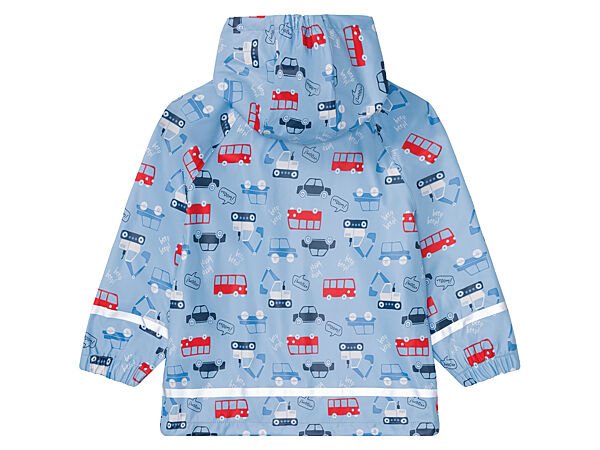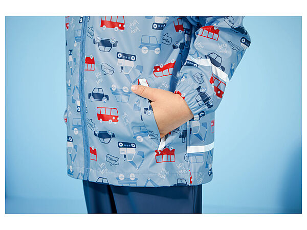 Куртка-дощовик для хлопчика бренду Lupilu (Німеччина). У такому одязі не страшний дощ! Завдяки сучасній екологічній технології Bionic Finish Eco має вітрозахисні, водонепроникні та дихаючі властивості, а також брудовідштовхувальне покриття тканини. Не потребує прання, достатньо протерти вологою губкою. Застібається на блискавку із захистом підборіддя. З боків дві кишені. Рукави на гумці, для захисту від вітру та дощу. Щільна тканина з пропаяними швами. Глибокий каптур. Світловідбивачі на кишенях, рукавах, спині.Заміри: надаємо по запиту