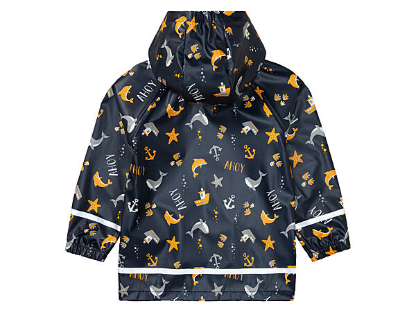 Куртка-дощовик для хлопчика бренду Lupilu (Німеччина). У такому одязі не страшний дощ! Вітрозахист та водонепроникність завдяки проклеєним швам. Дихальні властивості, а також брудовідштовхувальне покриття тканини. Не потребує прання, достатньо протерти вологою губкою. Застібається на блискавку із захистом підборіддя. З боків дві кишені. Рукави на гумці, для захисту від вітру та дощу. Глибокий капюшон. Зі світловідбиваючими декоративними елементами з матеріалу 3M Scotchlite™. Усередині практична бірка з ім´ям та петля для підвішування.Заміри: надаємо по запиту