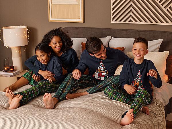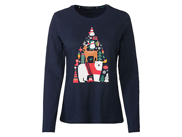 Жіноча піжама із бавовняного трикотажу з різдвяним принтом від Німецького бренду Esmara. Складається з реглану та штанів. Реглан з круглим вирізом та принтом спереду. Штани з еластичним поясом і манжетами знизу на штанях.Заміри: надаємо по запиту