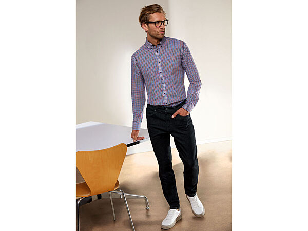 Сучасна ділова сорочка Slim Fit з довгим рукавом, Nobel League, Німеччина. Натуральна, комфортна, високоякісна чиста бавовна, легке прасування. Регульовані манжети, довгий рукав. Сучасний комір, Wendler вставки з гарантією якості від розтягування для комірів та манжет. Зносостійка тканина, протягом тривалого часу зберігає свої первісні властивості та зовнішній вигляд. Контрастні тканинні нашивки на ліктяхЗаміри: Комір 39 см, довжина 80 см, груди 113 см, талія 102см, довжина рукава 66,5 см