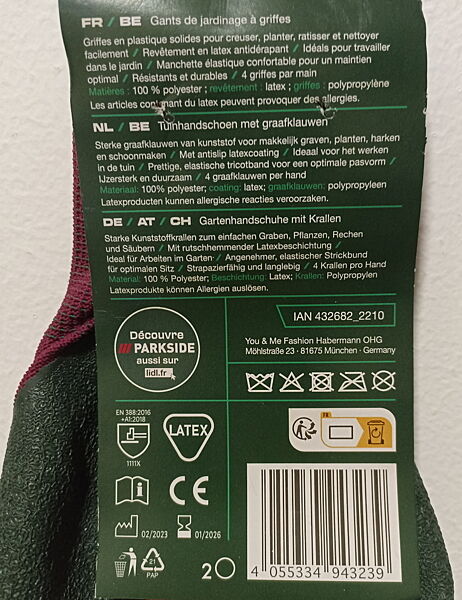 Подробное описание: Садові рукавички з кігтями для чоловіка Parkside LIDL 432682 чорний