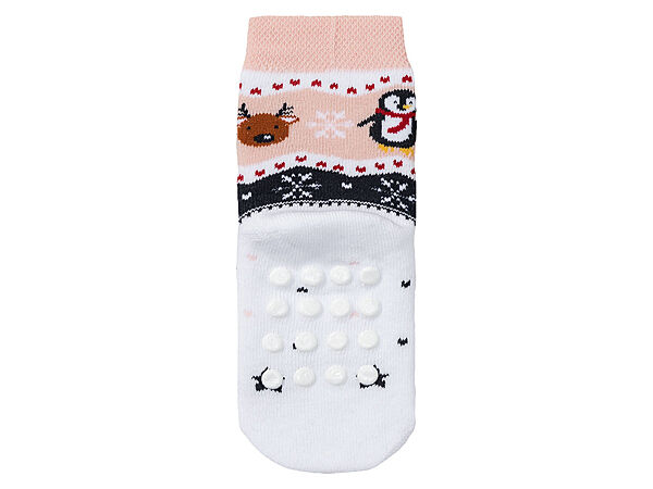 Махрові термо-шкарпетки з новорічним принтом та із захистом від ковзання від німецького бренду Lupilu. Природний комфорт при носінні завдяки органічній бавовні. М´які та зігріваючі завдяки шорсткій внутрішній частині. Оптимальна посадка та стабільність форми завдяки волокну LYCRA®. Кількість 2 пари.Заміри: надаємо по запиту