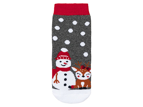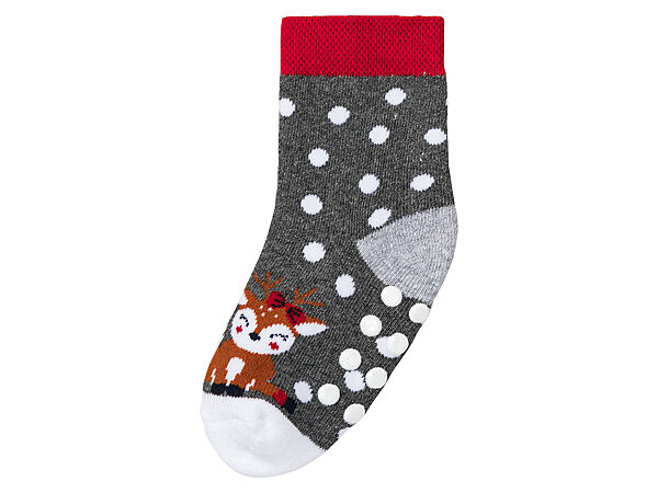 Махрові термо-шкарпетки з новорічним принтом та із захистом від ковзання від німецького бренду Lupilu. Природний комфорт при носінні завдяки органічній бавовні. М´які та зігріваючі завдяки шорсткій внутрішній частині. Оптимальна посадка та стабільність форми завдяки волокну LYCRA®. Кількість 2 пари.Заміри: надаємо по запиту