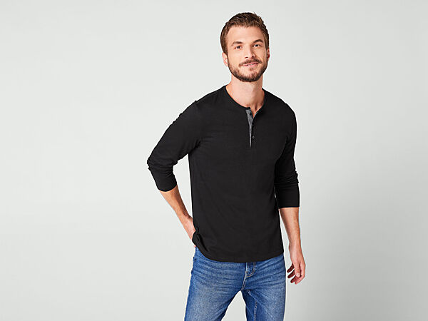 Футболка-лонгслів з планкою на гудзиках для чоловіка Livergy LIDL 456223 чорний