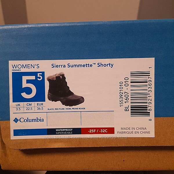Подробное описание: Зимові черевики Columbia us5,5/eur36,5/22,5см. Нові