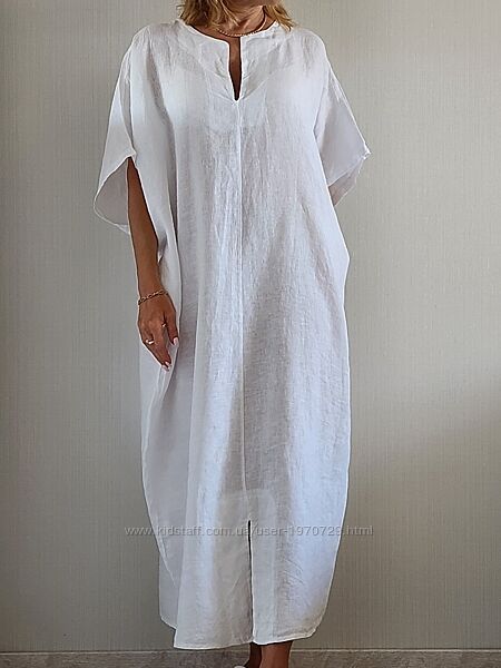 Подробное описание: Белое платье кафтан оверсайз Италия лён