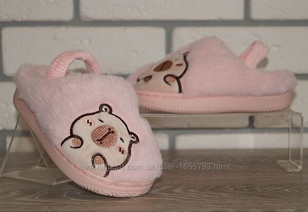 Новинка! Дитячі кімнатні / домашні тапочки з резинкою для фіксації п´яти. Мають якісне пошиття, оригінальний зовнішній вигляд та яскравий насичений колір.Ідеально сидять на дитячій ніжці, не спадають під час руху, стійкі до зношування. Верх пошитий з м´якого приємного на дотик штучного хутра. Підкладка та устілка з густого теплого флісу. Максимально легка та гнучка підошва, має високу зносостійкість.