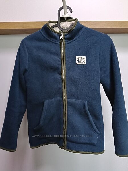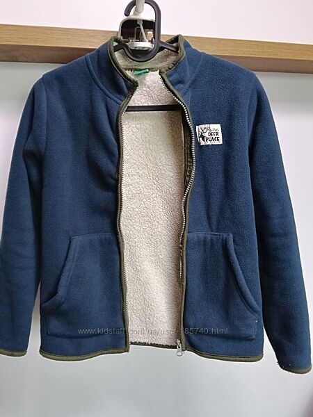 Фліска на блискавці. мега тепла, комірець стійка, підкладка шерпа - штучне хутро. ерх приємний на дотик, подібний на замшу. Кармани спереду всередині теж шт хутро. Колір синій. стан добрий. Купувався новим у пепко, після однієї моєї дитини.Розмір 8-9 років, зріст 134-140. Відповідає.