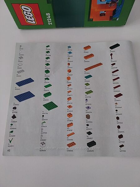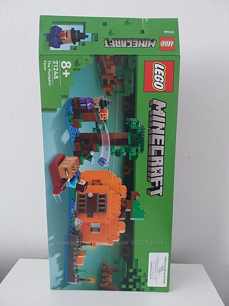 Ціна за швидке замовлення.Конструктор LEGO Minecraft Гарбузова ферма 21248 в коробці, з інструкцією, зібраний раз. На останньому фото не має одніє помаранчової деталі, в замін поклала чорну і не має другої зеленої деталі (справа на фото).