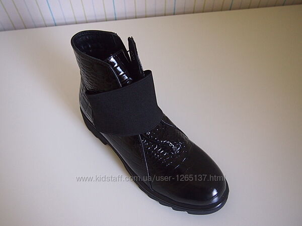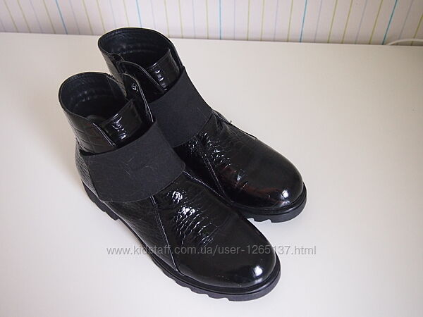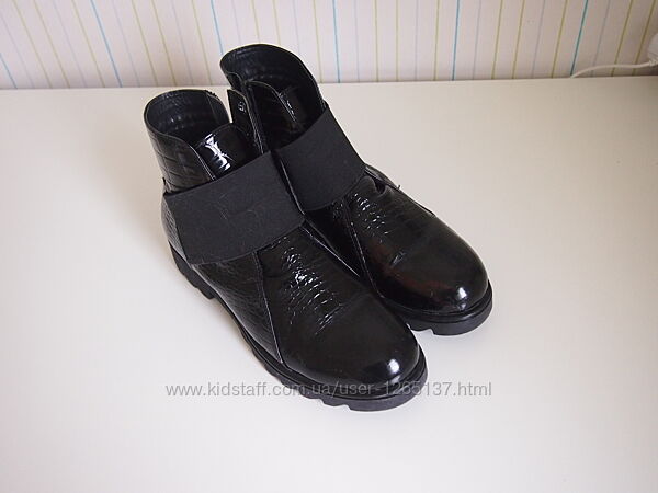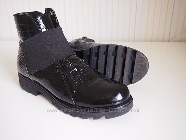 Черевики демисезонні ТМ Palaris. Шкіра лакова зверху, фліс всередині. Підошва легка, не дивлячись на масивний вигляд. Модель регулюється гумкою на будь-який підйом. Є блискавка з внутрішнього боку.Черевики у дуже хорошому стані.