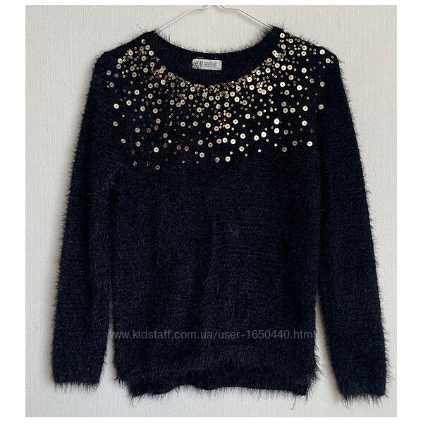 Подробное описание: H&M Размер 12-14 лет Пушистый нарядный Джемпер с пайетками Рост 158-164 см