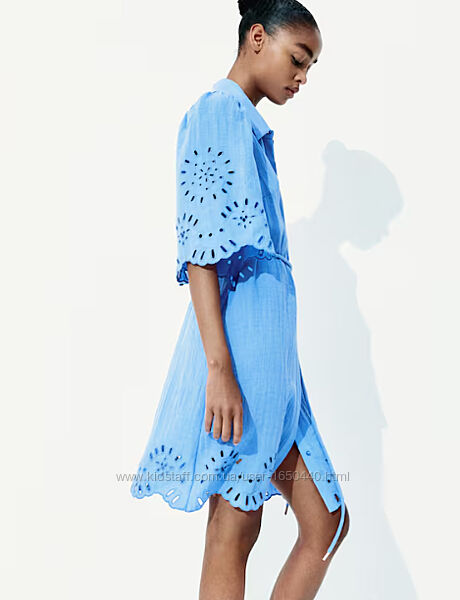 Подробное описание: H&M Размер Л вискозное Платье рубашка с вышивкой ришелье нарядное Оригина