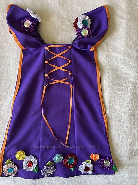 Сукня прикрашена дуже гарними квітами, позаду регулюється шнурівкою.