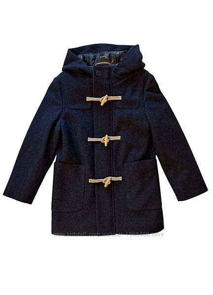Чудове демісезонне пальто для хлопчика. Верх - шерсть 80%, поліамід 20%, підкладка - 100% поліестер. Вшитий каптур, високий комірець, що надійно закриває шию, внутрішня застібка - змійка, зовні прикрита поличкою із декорованими гудзиками, накладні кармани.Стильне, тепле високоякісне пальто для маленького джентельмена.Розмір: 7 років, 128 см, заміри виробу: плечі - 33 см, рукав від плеча - 45 см, ПОГ - 37см, довжина по спинці - 60 см.