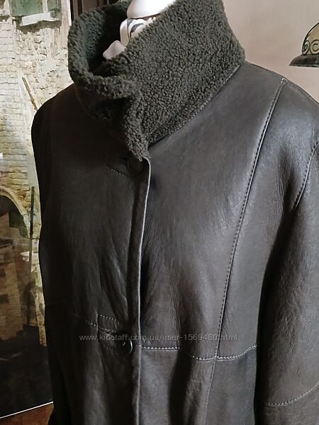 Ооочень красивая уютная невероятно мягкий и лёгкий натуральна дублянка из ягнёнока. Хороший крой свободный до колен, воротник стойка, два кармана снаружи и один внутри на молнии. Состояние отличное мех внутри чистый без следов носки . Цвет темно зелёный глубокий(природный лесной).Дубленка очень комфортная в носке и хорошо садится на фигуре. Размер указан 14 М-L .Параметры: