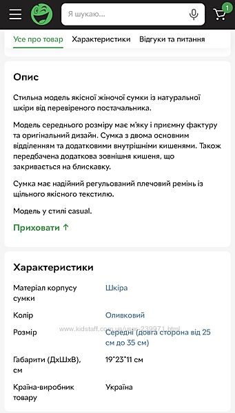 Подробное описание: Шкіряна сумка кросбоді оливкова