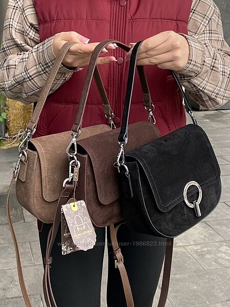 Стильні зручні сумочки з натуральної замші.Polina&Eiterou. Нова колекція. Натуральний замш. Трендові кольори осені.Коротка ручка., додатково довгий ремінець.