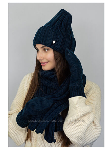 Подробное описание: Шапка женская варежки шарф комплект джинсовый