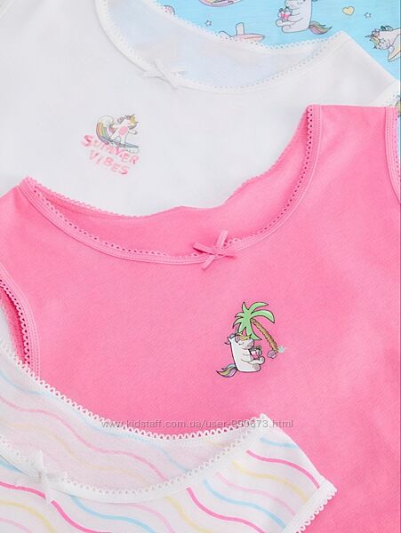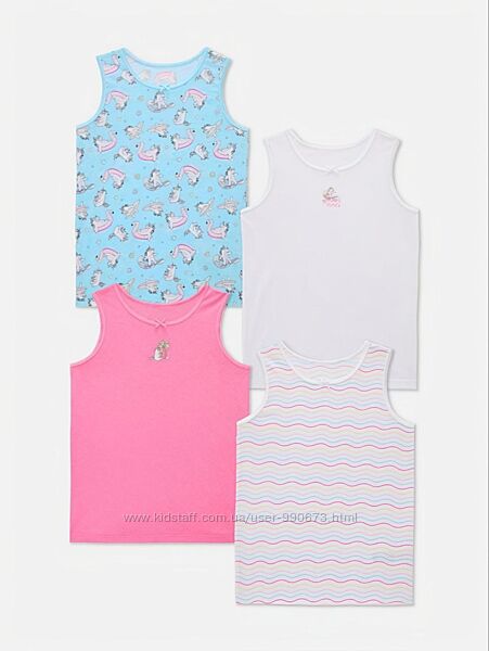 Подробное описание: Комлект із чотирьох майок широкі бретелі дівчатам 104-110