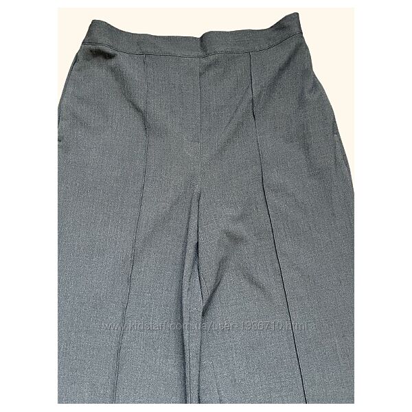 Якісні та зручні широкі штани темно-сірого кольору на широкій резинці, попереду імітація застібки. З боків внутрішні кишені. Тканина костюмна, злегка тягнеться. Склад: 64% поліестер, 32% віскоза, 4% еластан. Розмір вказаний на бирці 12, Довжина зовнішнього шва 109 см., внутрішній 77 см., ПОТ 40 - 45см., ПОБ 48 - 51 см., висота посадки 33 см., ширина штанини зверху 34 см., знизу 29 см. Стан ідеальний, нового виробу.Другие объявления продавца