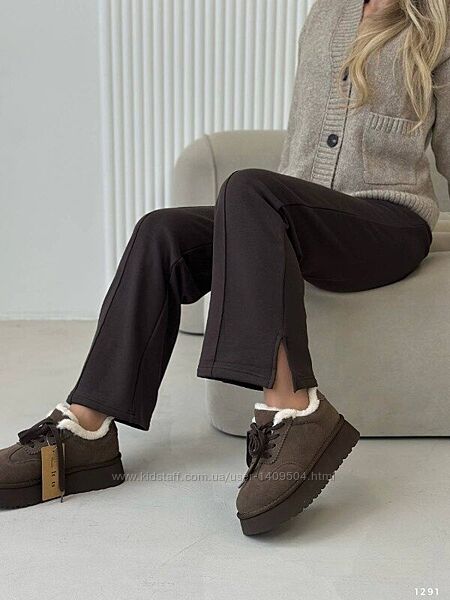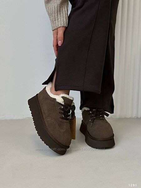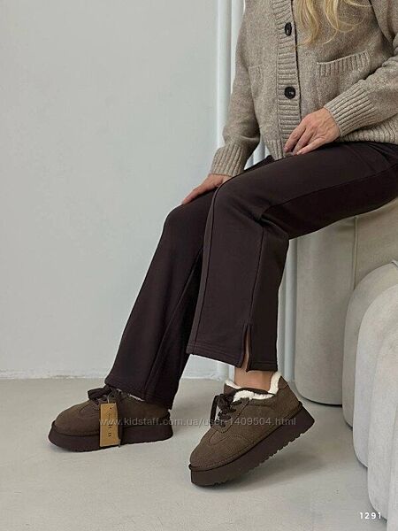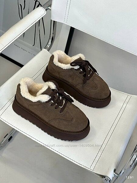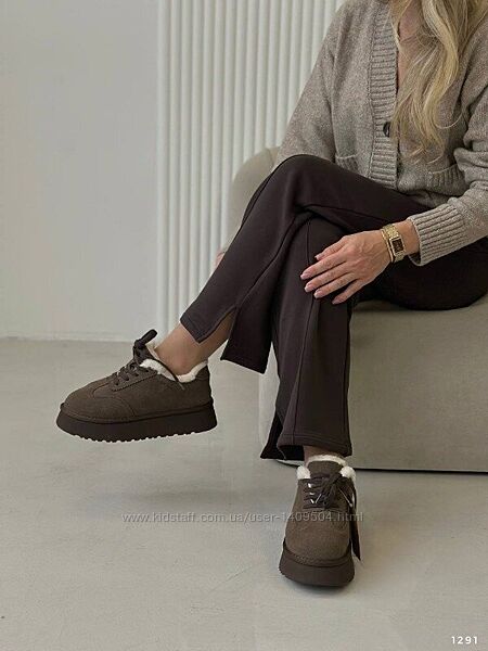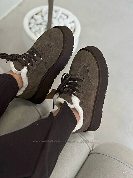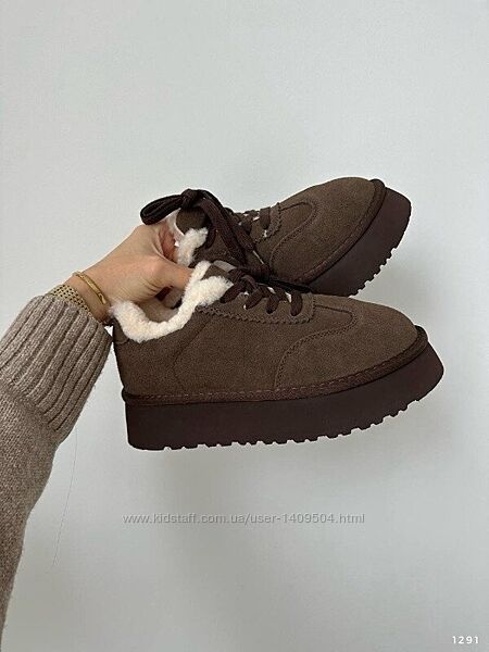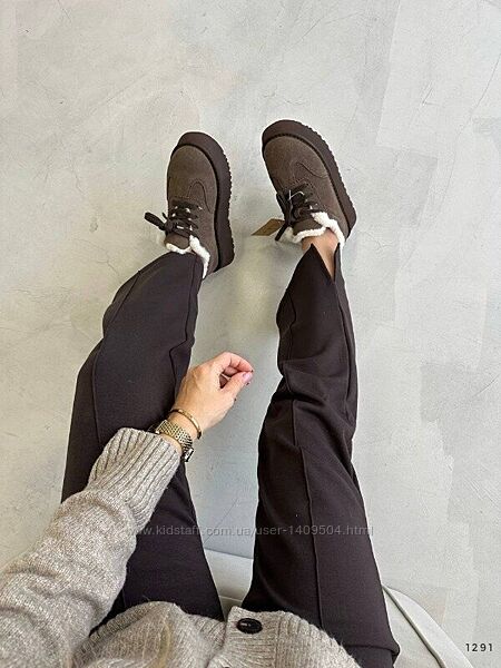 Стильні та теплі черевички виконані з натуральної замші та в трендовому шоколадному кольорі. Дуже легенькі та м"які. Усередині - напівшерстяне набивне хутро, що забезпечує комфорт і затишок у прохолодну погоду. Модель має товсту підошву висотою 4,5 см, яка додає зручності та надійно ізолює від холоду.