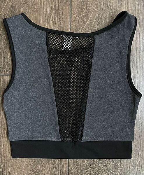 Симпатичный спортивный бюстгальтер кроп топ серого цвета с сетчатыми вставкамиРазмер S