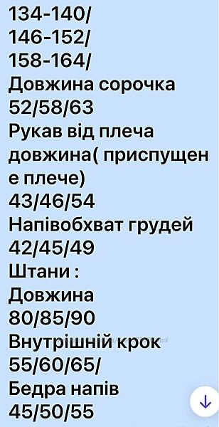 | Рост | 134 см, 140 см, 146 см, 152 см, 158 см, 164 см |