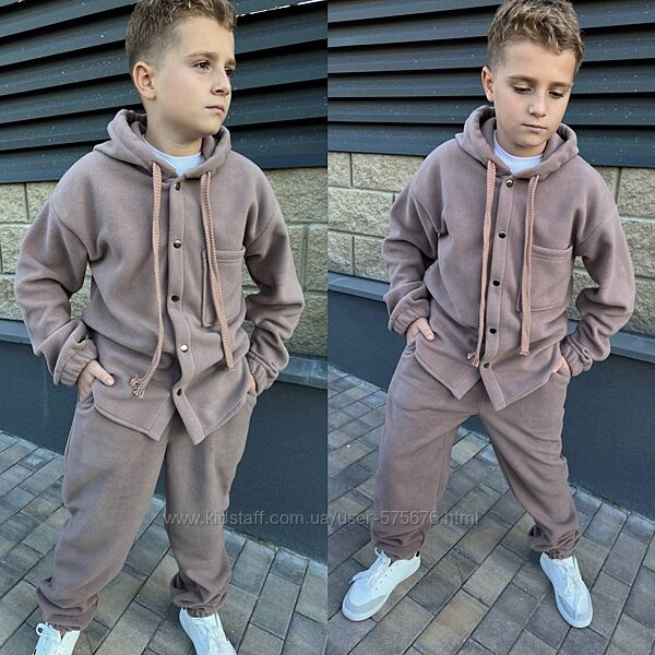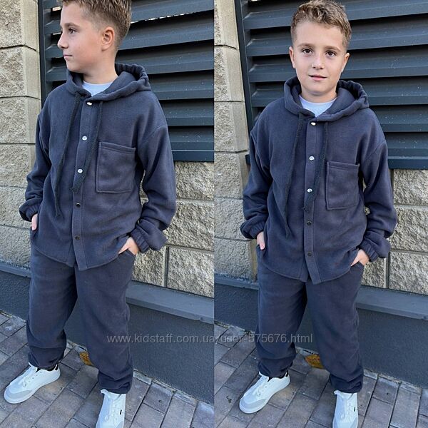 Подробное описание: р.134 до 164р. Однотонний костюм сорочка штани фліс- полар двосторонній