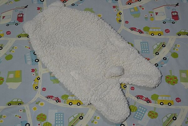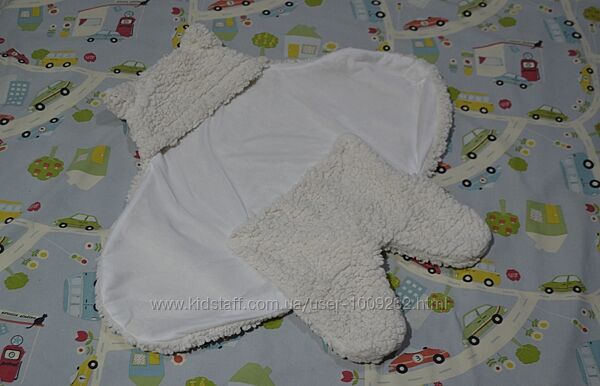 М’якесенький кокон / конверт в пологовий/ чи на хрестини хутровий для новонародженого / на дівчинку або хлопчика у вигляді ведмедика. Б/у у відмінному стані. Розмір 50-54 см, на 0-2 місяці. Застібається на липучки.Довжина (по спинці, від каптура/капюшонадо низу під хвостом)) – 34,5 см.