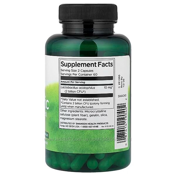 Подробное описание: Swanson пробіотик 120 капсул 1 млрд КУО на капсулу