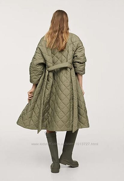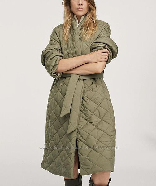 Шикарне стьобане пальто mango с,м,л. Довгий дизайн. V-подібний виріз із клапаном. Спущений рукав, плечові шви. Довгий рукав. Бічні кишені наблискавці. Регульований ремінь. Внутрішня підкладка. Кнопки прив´язки.