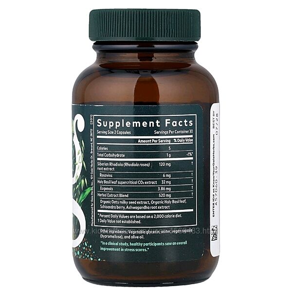 Боротьба зі стресом Клінічно досліджено для покращення реакції на стрес♢ Рослинна добавка Під час стресу скористайтеся цією формулою, щоб допомогти підтримати роботу надниркових залоз і гарне самопочуття Надниркові залози впливають на реакцію на стрес. Підтримка надниркових залоз допомагає організму в складні періоди. Містить родіолу, базилік священний, ашваганду та лимонник Ця синергетична суміш адаптогенних і заспокійливих трав допомагає підтримувати здоровий рівень енергії та боротися зі стресом. Традиційно використовується для підтримки здоров’я в боротьбі зі стресом Формула для підтримки енергії та життєвих сил. ♢ У клінічному дослідженні в здорових учасників спостерігалося загальне покращення показників стресу.