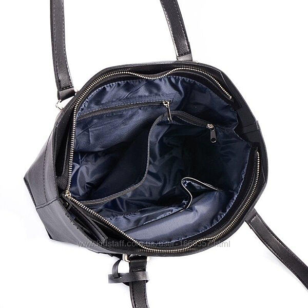 Сумка виготовлена зі штучної шкіри, застібається на блискавкуУсередині сумки два відділу, перегородка на блискавці та 3 кишені, одна з яких на блискавці