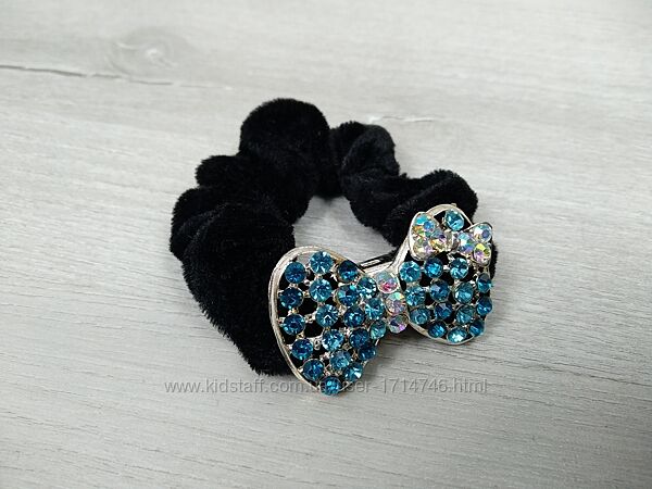 Гумка на волосся (арт. 9147).Ніжно бірюзові камінчики на бантику.