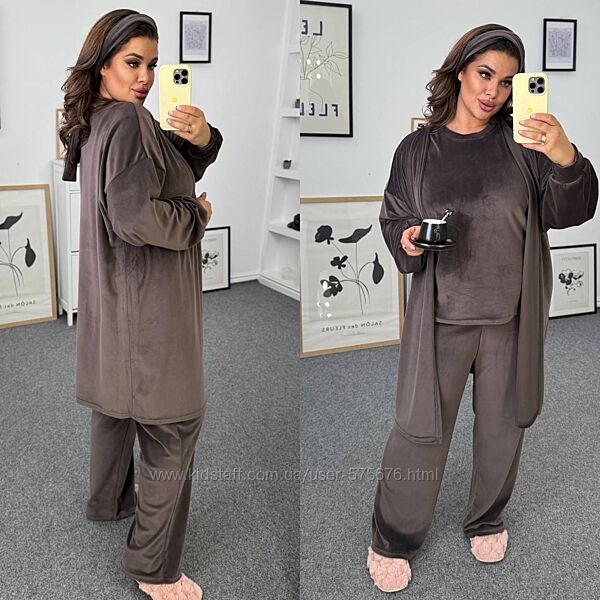 Подробное описание: р.48 до 58р. Велюровий костюм трійка футболка, штани, халат