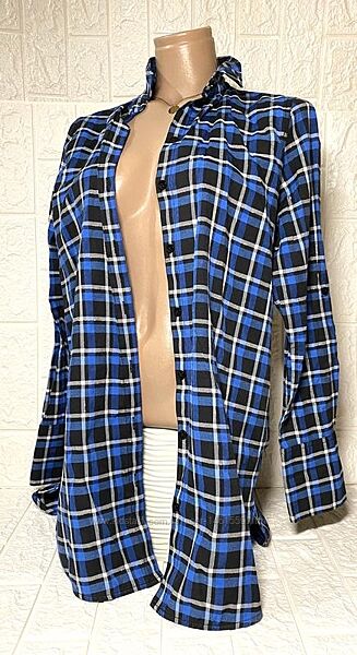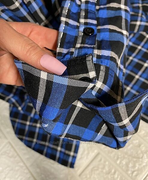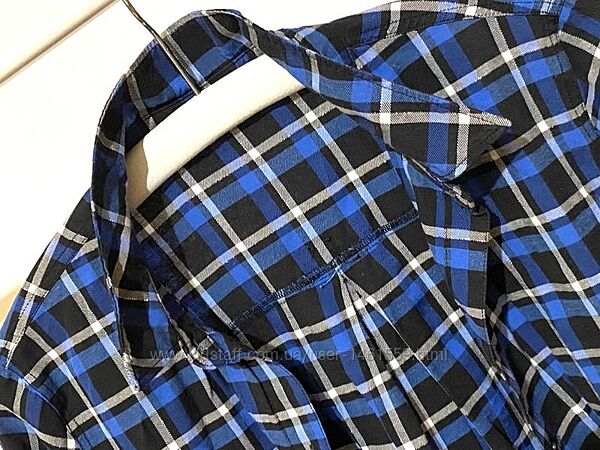 Подробное описание: Eur 38 бавовна довга сорочка в клітинку синій чорний білий жіноча